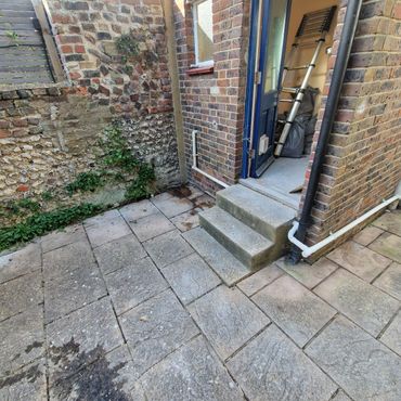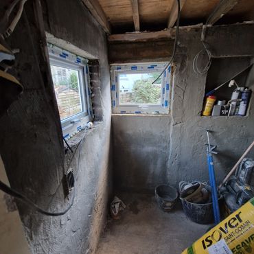 When the client approached us she had a kitchen design and wanted us to do all the works associated to bringing her vision to reality. Upon dismantling the kitchen we came across damp & mould issues which resulted in us having to strip all the external walls back to brickwork and getting specialist's in to apply a liquid DPM and make good. We removed the window that was in the kitchen and replaced it with a White PVC door and formed a new set of steps to be able to gain access to the rear garden. We blocked up the old door way that was in their utility room to make the space required for their new shower room
